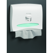 Dispensador de papel higiénico interplegado en ABS color blanco.